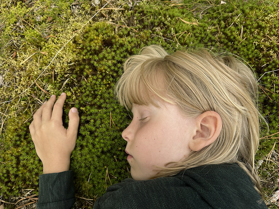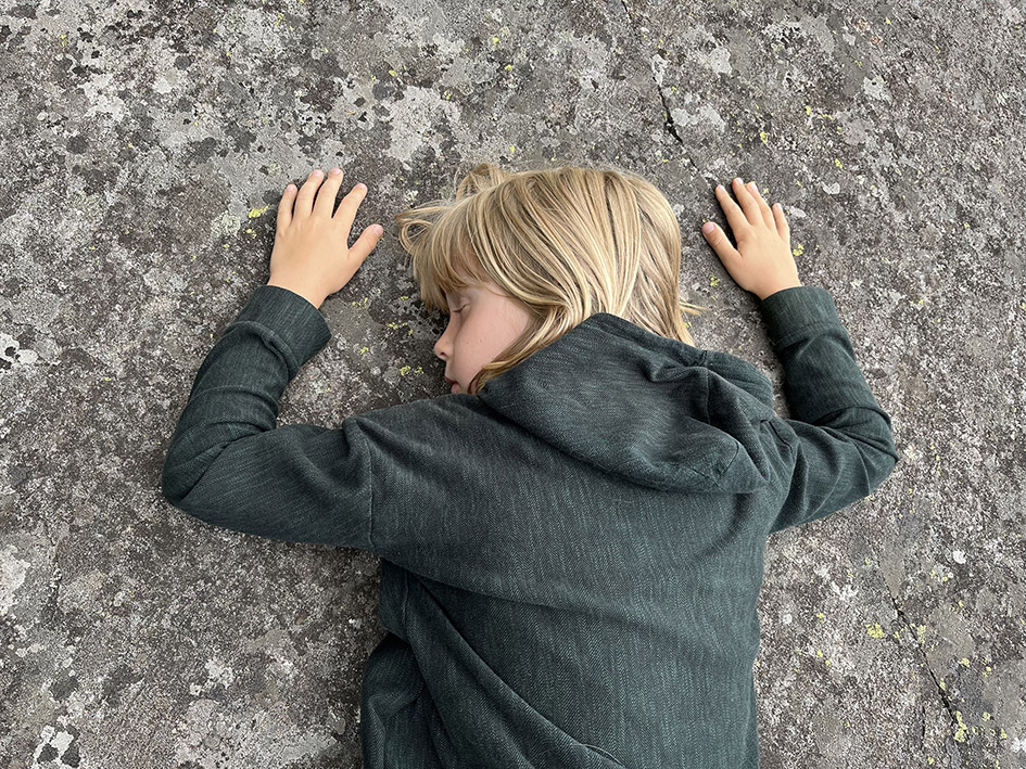 Kallion karheansileä, auringonlämmittämä pinta tuntuu vahvalta ja turvalliselta paljaan kämmeneni alla.